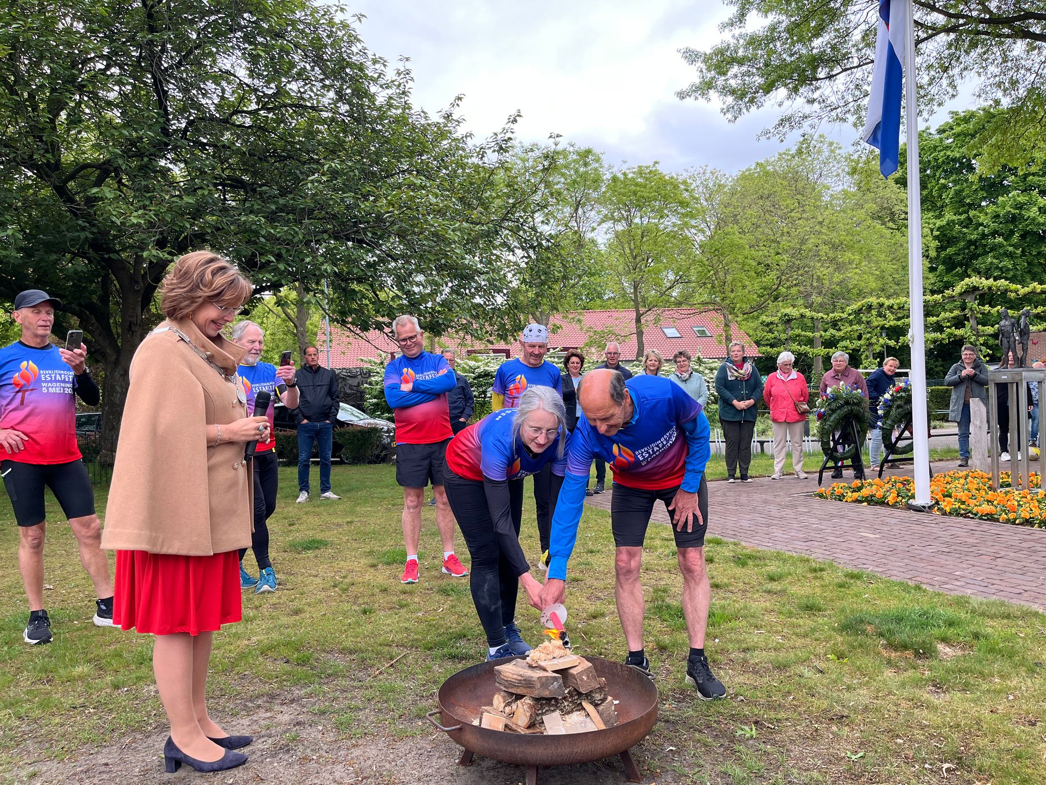 Het vuur, dat zijn oorsprong vindt op de stranden van Normandië – waar op 6 juni 1944 de bevrijding van Europa begon – symboliseert de vrijheid en herinnert aan het belang van vrede. In de vroege ochtend van 5 mei arriveerden de Nunspeetse lopers rond 7.30 uur bij het dorpshuis in Vierhouten. Burgemeester Celine Blom stak daar de bevrijdingsvlam aan en sprak de aanwezigen toe. Aansluitend genoten de lopers en belangstellenden van een gezamenlijk ontbijt.
