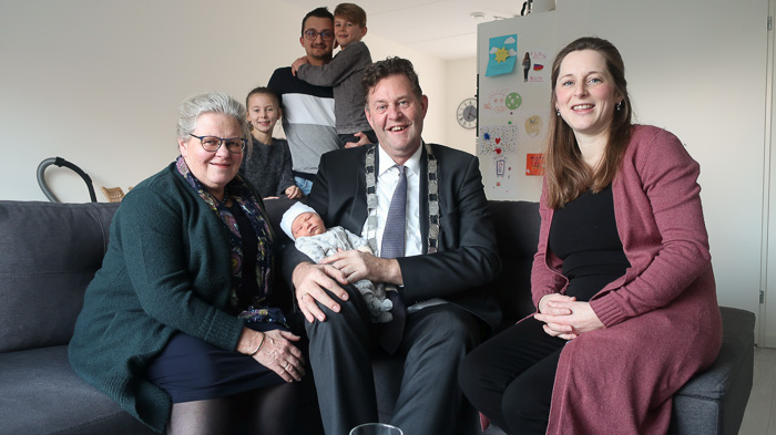 Burgemeester Van de Weerd is met zijn echtgenote vanmiddag op bezoek geweest en heeft de trotse ouders gefeliciteerd.