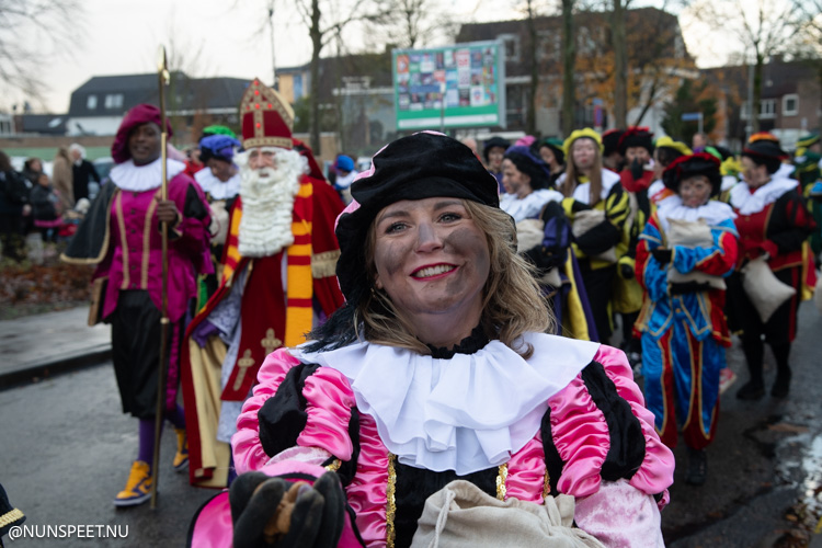Rond 13.30 uur arriveert Sinterklaas met zijn Pieten op het Whemeplein, waarna hij een feestelijke tocht maakt door het centrum van Nunspeet. De route loopt via o.a. de Ds. de Bouterlaan, Dorpsstraat en Bergakkerweg naar het Marktplein, waar de Nunspeetse Harmonie zorgt voor muzikale begeleiding.