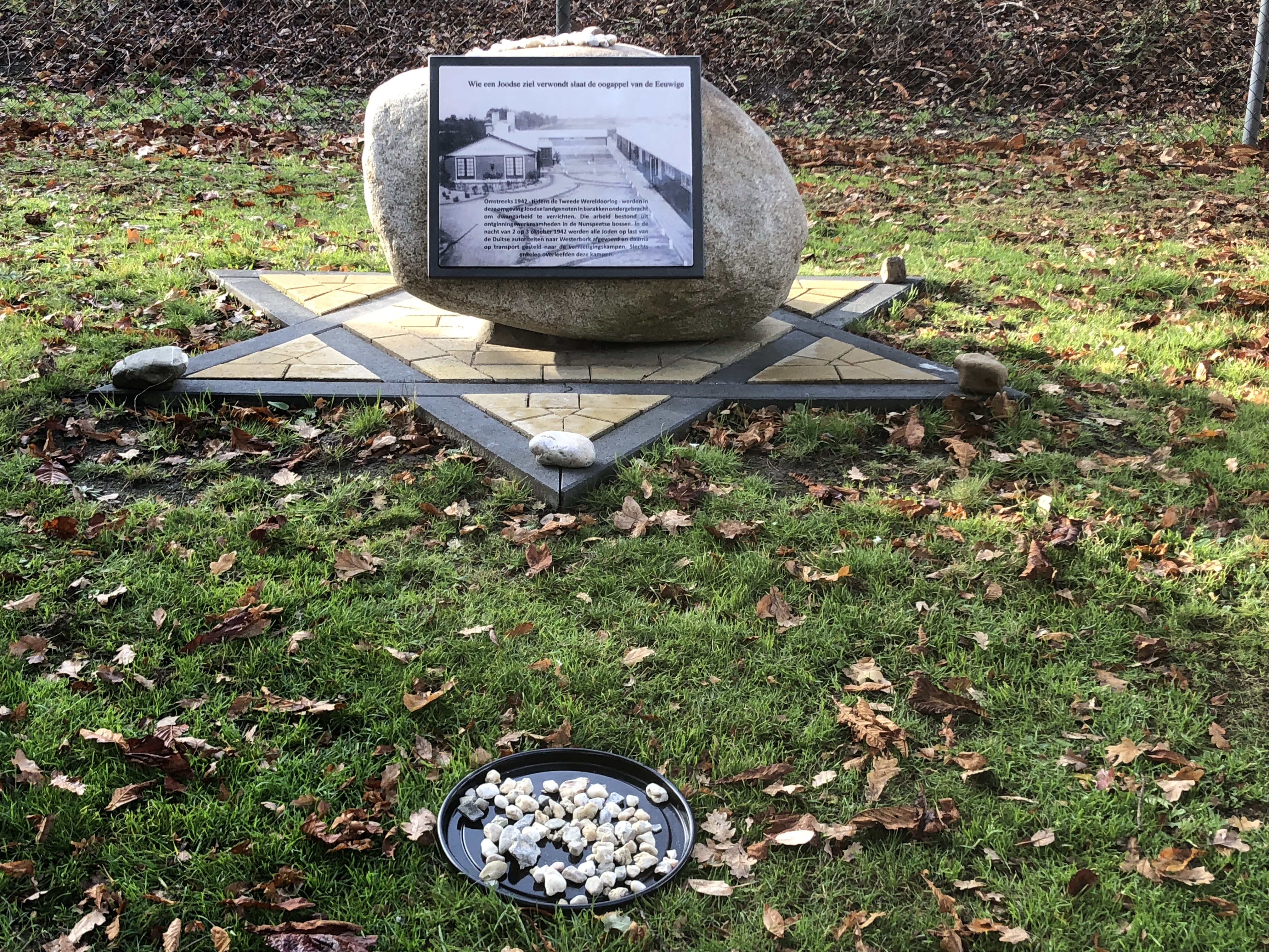 De joden in het werkkamp werden destijds gedwongen tot bosarbeid. In de vroege morgen van 3 oktober 1942 werden ze afgevoerd naar Westerbork. Niemand overleefde de oorlog. Het monument is eigendom van de heemkundige vereniging Nuwenspete welke ook het initiatief voor de plaatsing heeft genomen.