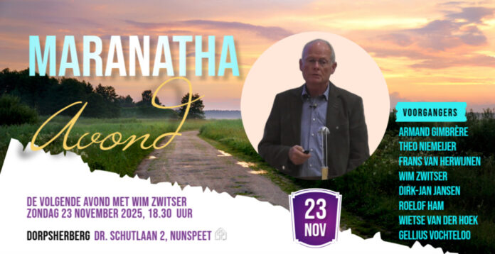 NUNSPEET – Aanstaande zondag 23 november 2025 hopen we met elkaar weer een Maranatha-avond te houden, deze keer met spreker Wim Zwitser bekend van o.a. Het Zoeklicht. De studies zijn elke 2 weken in de DorpsHerberg aan de Ds. Schutlaan 2 te Nunspeet.