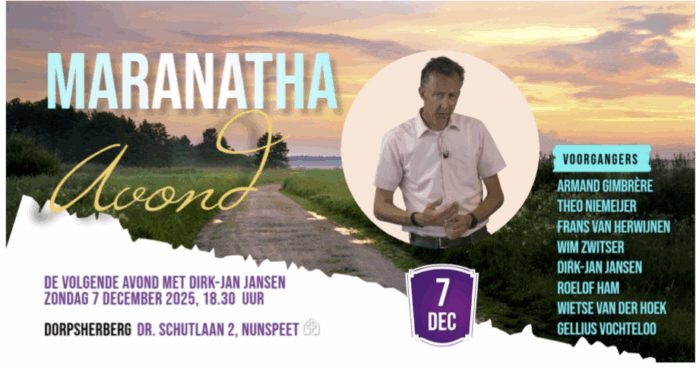 NUNSPEET – Aanstaande zondag 7 december 2025 hopen we met elkaar weer een Maranatha-avond te houden, deze keer met spreker Dirk-Jan Jansen bekend van o.a. Het Zoeklicht.