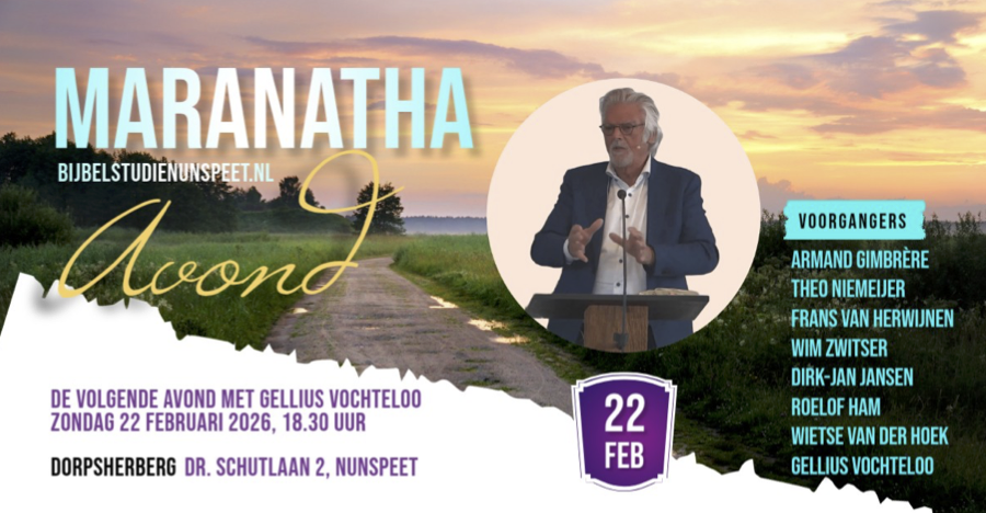 NUNSPEET – Aanstaande zondag 22 februari 2026 is er weer een Maranatha-avond in Nunspeet met deze keer spreker Gellius Vochteloo uit Vierhouten.