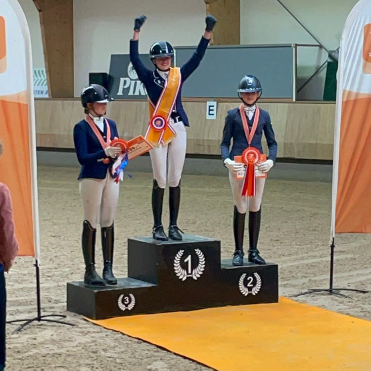 Voor Ponyclub Klein Maar Dapper verscheen Alisa van Bommel op zondag aan de start in de klasse M1, categorie DE. Als vierde deelnemer in een sterk deelnemersveld van twintig combinaties reed zij met haar merrie Elexa een fantastische en foutloze proef. De combinatie werd beloond met een prachtige score van 68,75%. Geen enkele deelnemer wist deze score te overtreffen. Daarmee mocht Alisa plaatsnemen op het hoogste schavot van het erepodium en werd zij gehuldigd als Nederlands Kampioen – een geweldige prestatie waar de vereniging enorm trots op is.