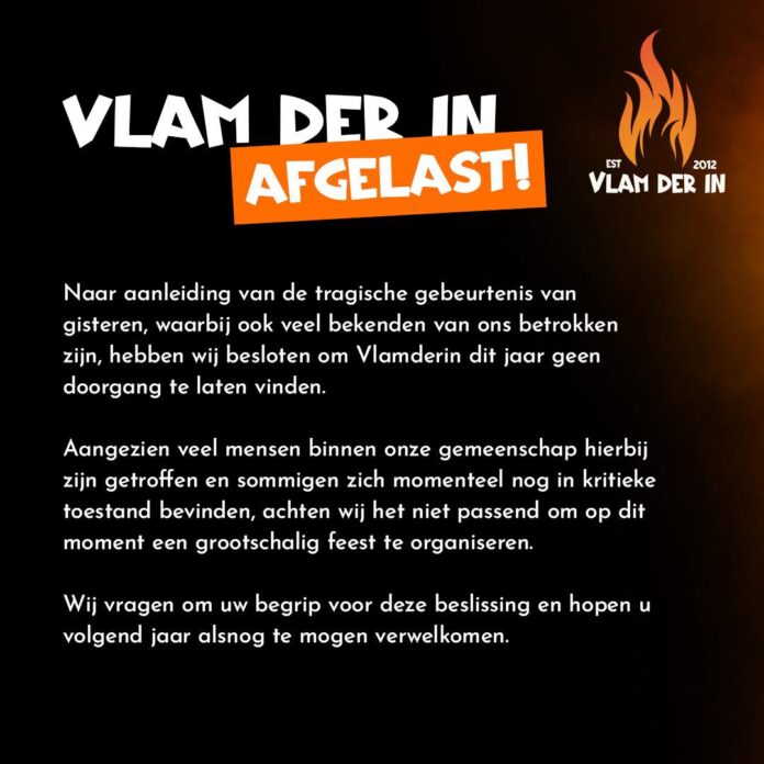 “Veel mensen binnen onze gemeenschap zijn diep geraakt. Uit respect en medeleven hebben wij besloten om Vlam der In dit jaar af te gelasten,” aldus de organisatie.