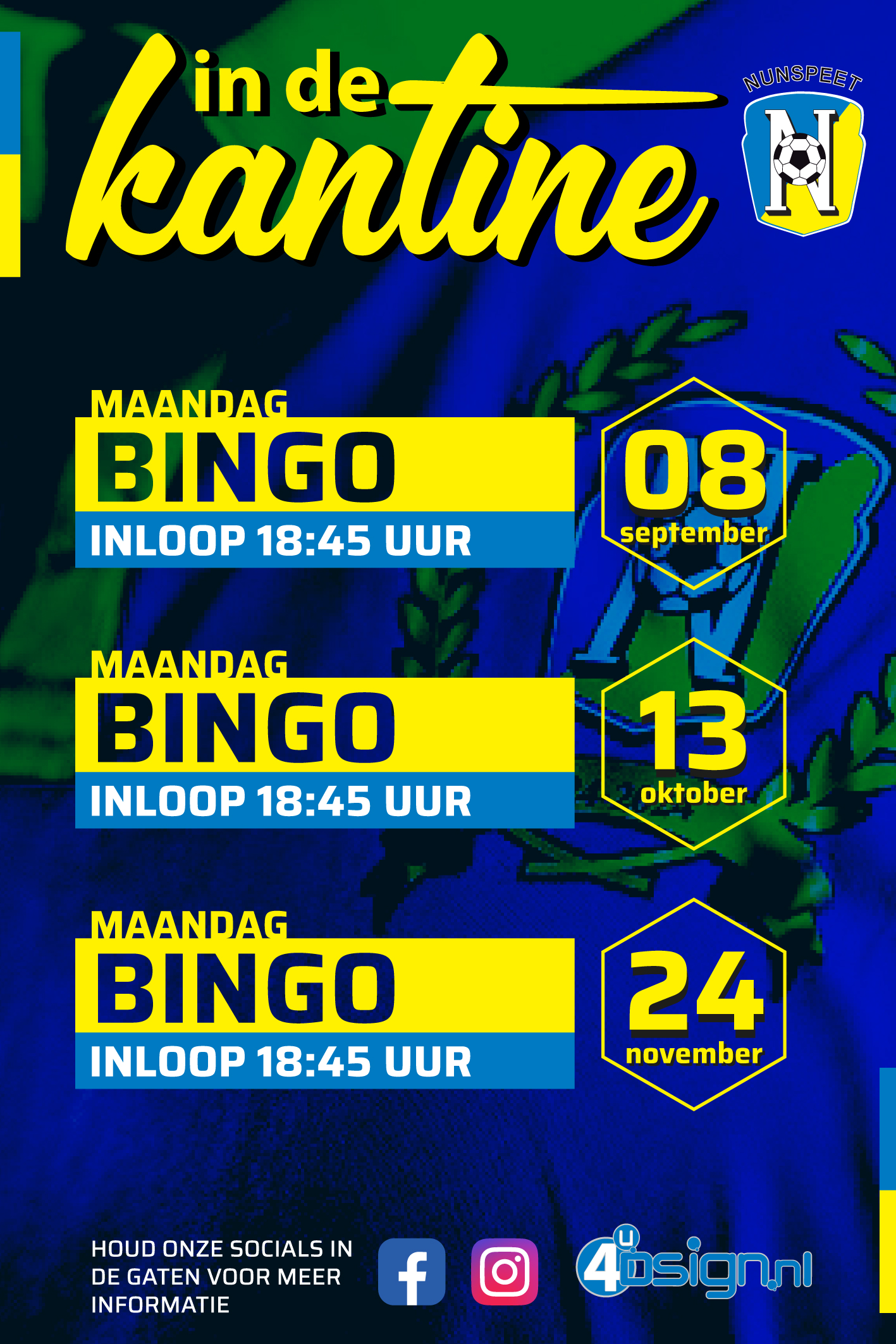 De bingo start om 19.30 uur, en de kantine is geopend vanaf 18.45 uur. Iedereen is van harte welkom om deel te nemen aan deze gezellige avond vol spanning en plezier bij VV Nunspeet.